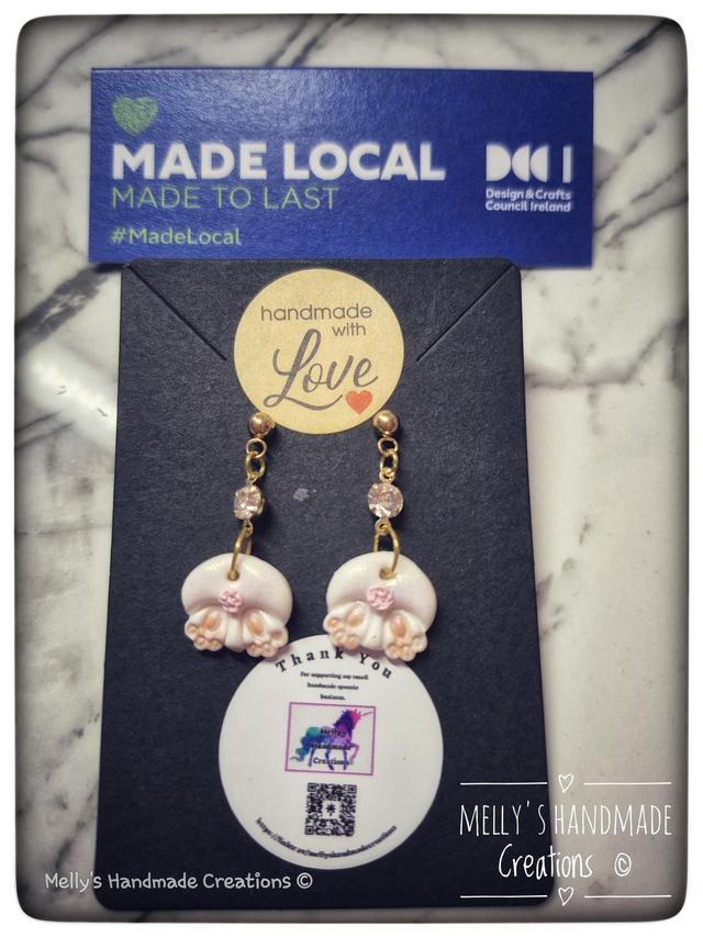 Handmade from polymer clay, with Cubic Zirconia gemstones.