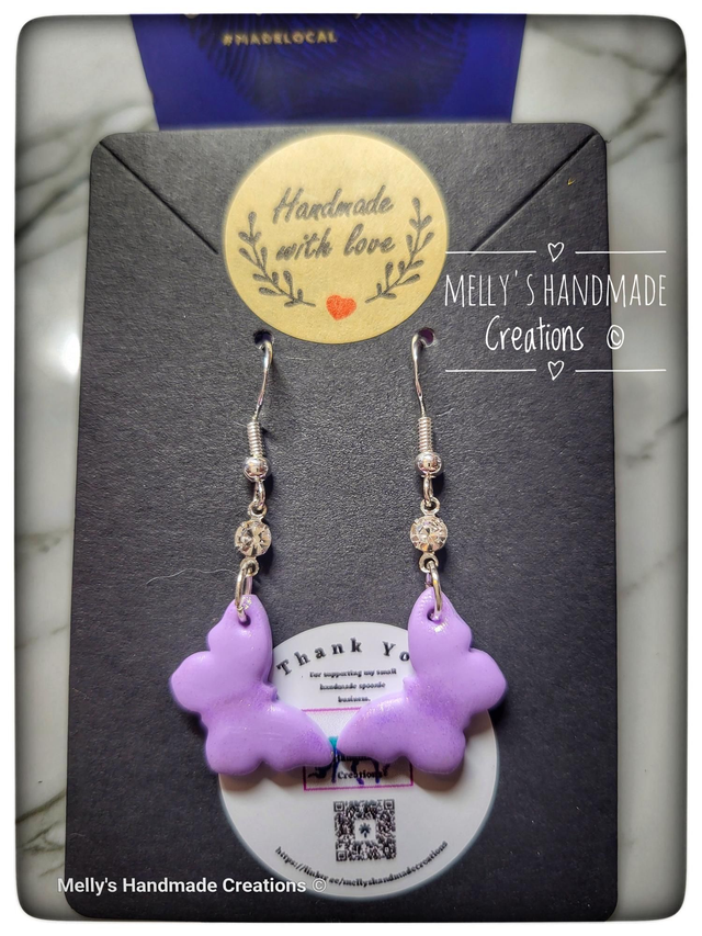 The butterflies are handmade from polymer, featuring a shimmery detail. The Cubic Zirconia stone adds a nice subtle touch of bling.