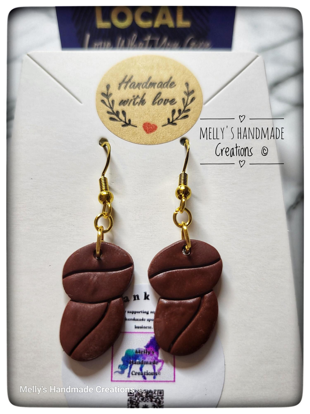 Can't go a day without coffee? Then these are for you! Handmade coffee beans made from polymer clay and mounted on sterling silver, gold plated ear wires. Suitable for sensitive ears and very lightweight.