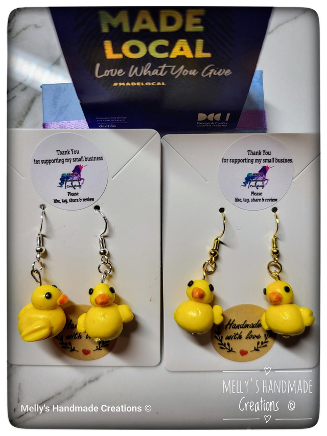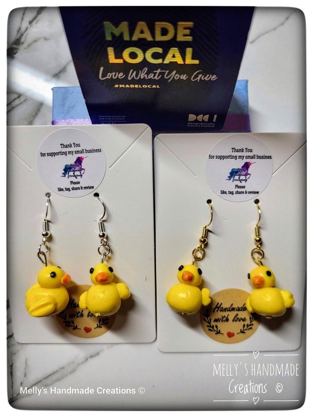 The cute ducks are handmade from polymer clay, making them lightweight and comfortable to wear.