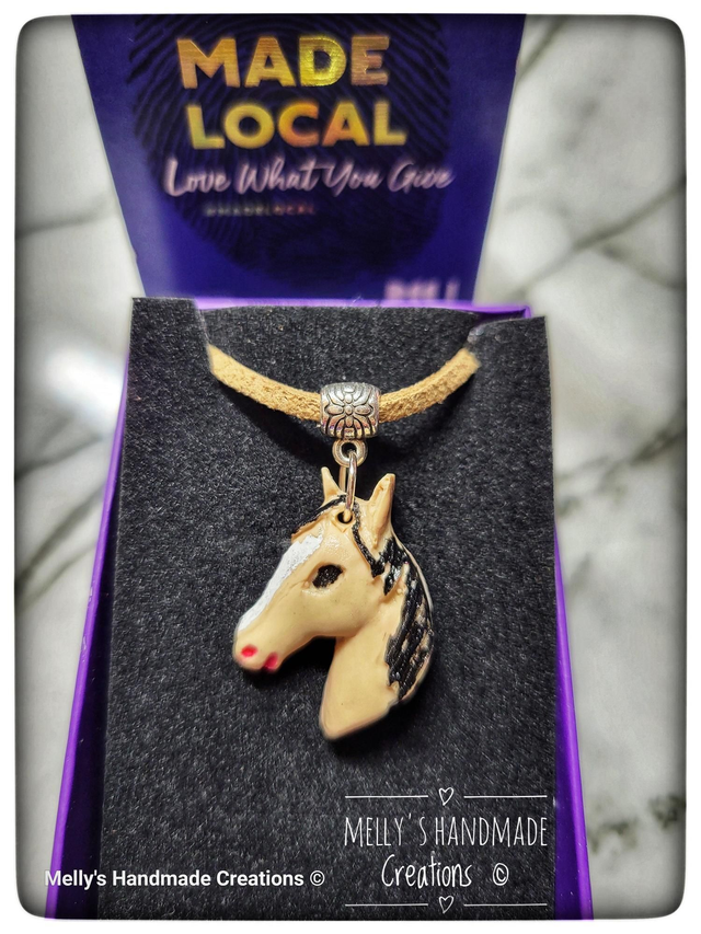 Gorgeous horse head pendant, handmade from polymer clay and hand painted.