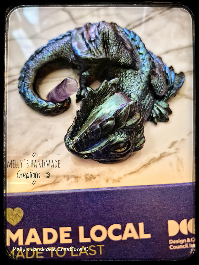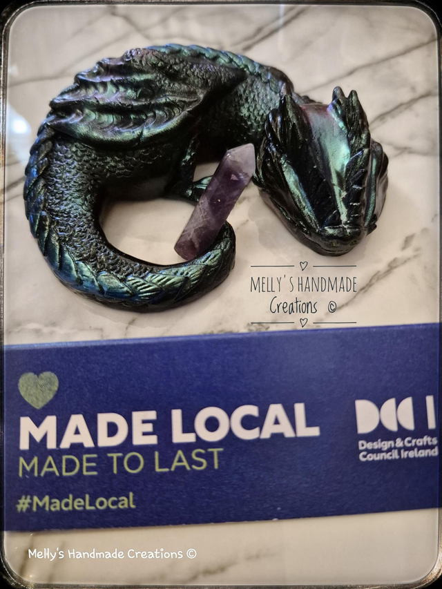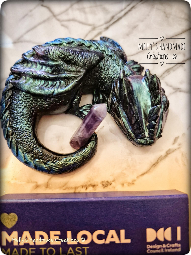 This gorgeous Dragon is handmade from polymer clay with mica powder to add a gorgeous shimmer and sparkle.