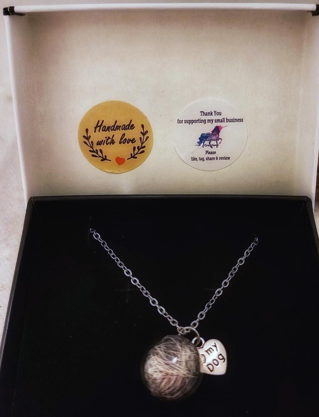 You send me your pets hair, I'll let you know when I receive it, any unused hair will be returned to you. Pendant is presented in a gift box.